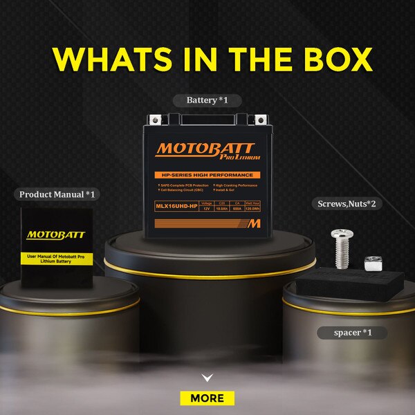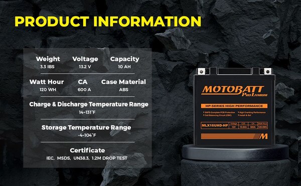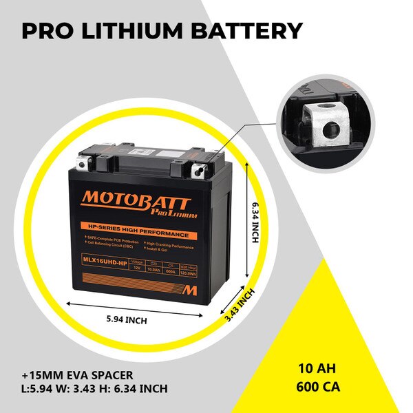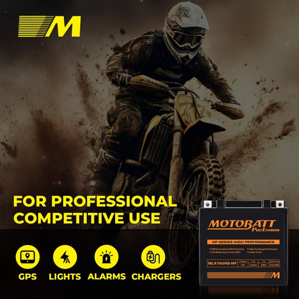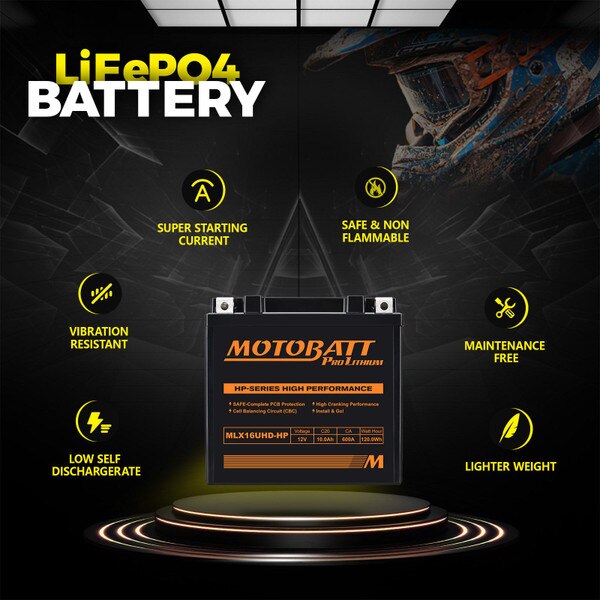 MLX16UHD-HP Motobatt LifePo4 Lithium Battery Replaces MBYZ16HD, MBTX16U
