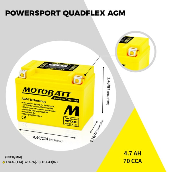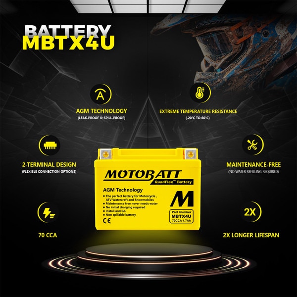 MBTX4U Motobatt 12V AGM Battery